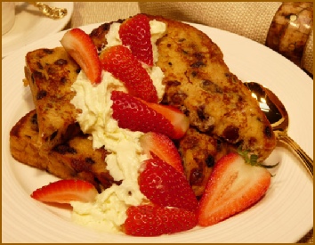 Serve at once with  fresh strawberries maple syrup and  whipped cream .